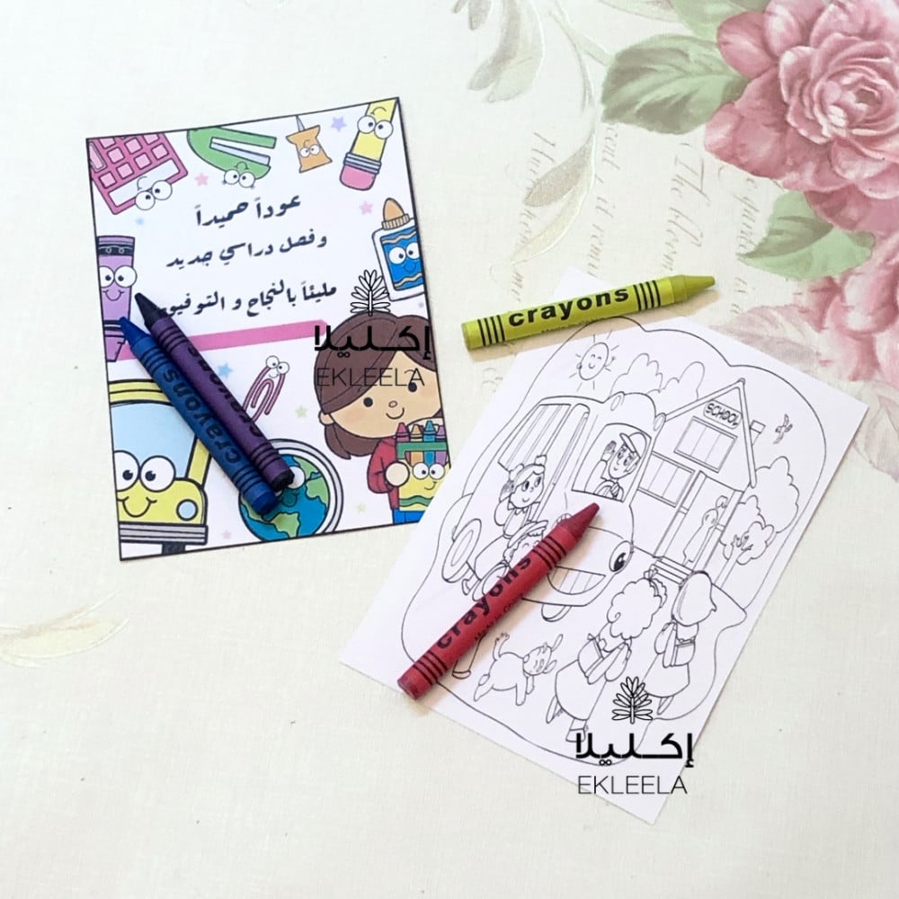 توزيعات ورقيه تلوين بثيم عن العوده للمدرسه ( 12 قطعه )