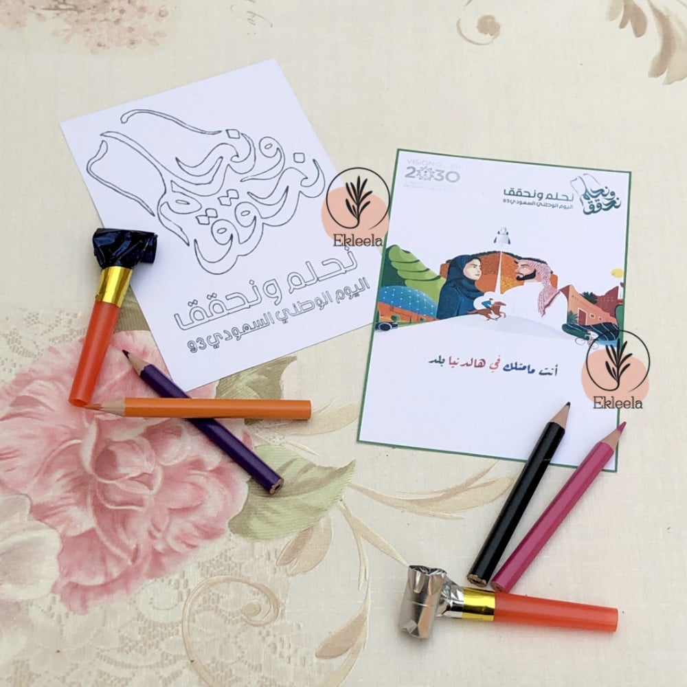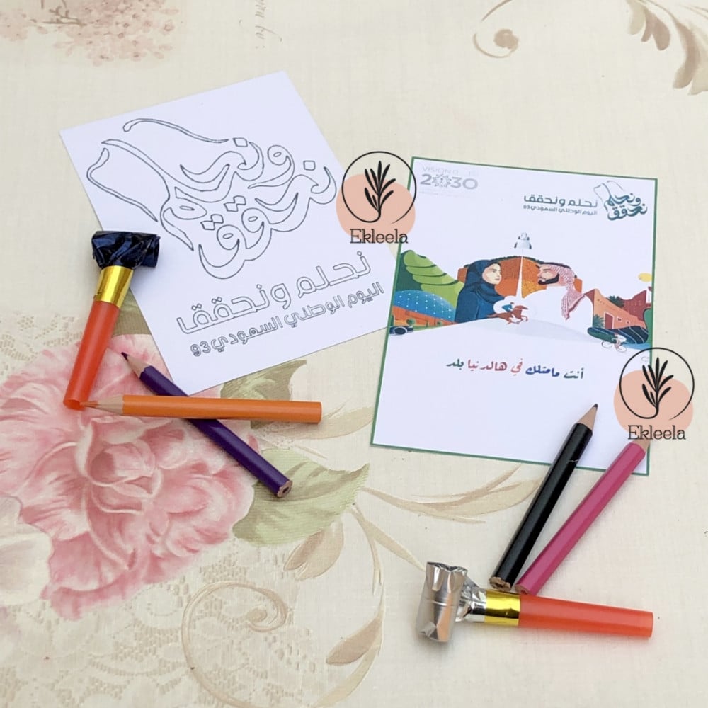 توزيعات تلوين ورقيه بثيم اليوم الوطني نحلم ونحقق ( 12 قطعه )