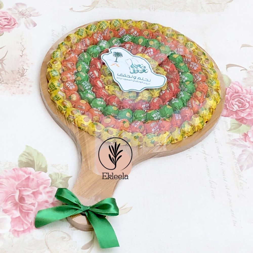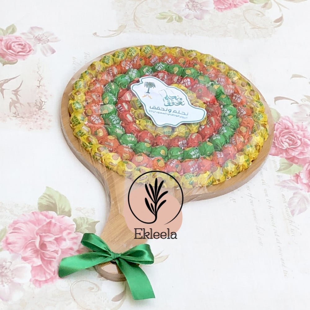 قاعده خشبيه على شكل دائري مع تعبيه حلاو فواكه ( قاعده واحده )