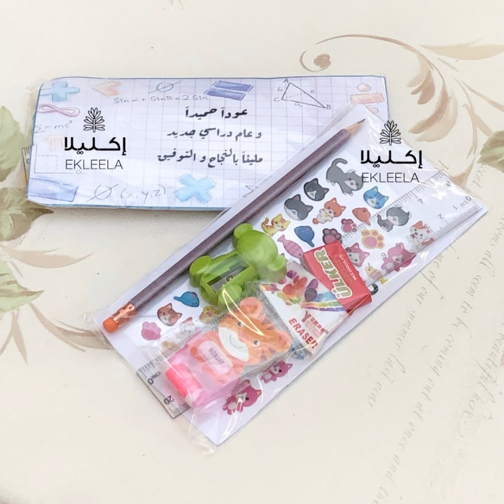 المحايات و اللواصق والاقلام الرصاص ملونه و منوعة الشكل كما هو موضح بالصور