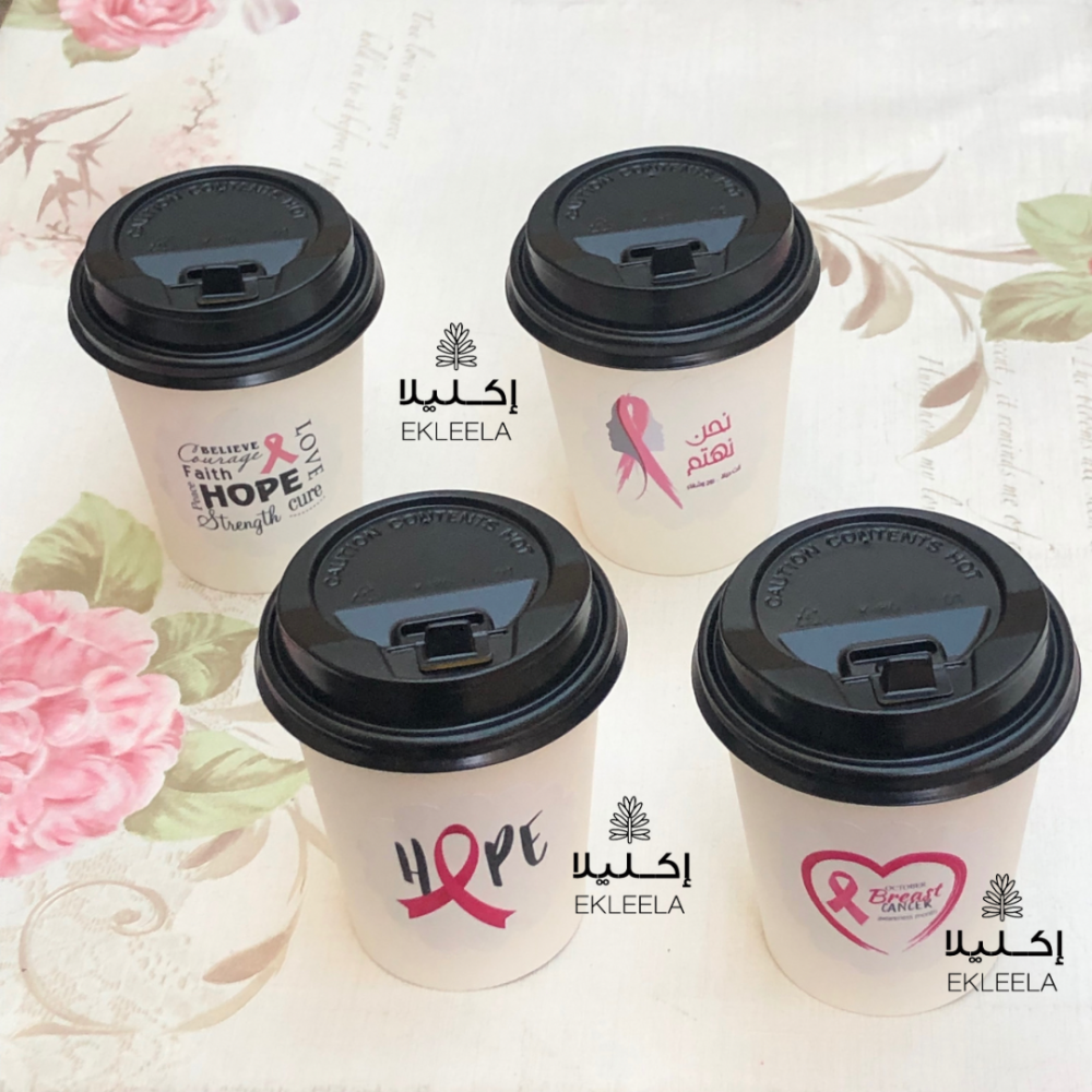 توزيعات أكواب القهوه بثيم التوعية عن سرطان الثدي ( 12 قطعه )