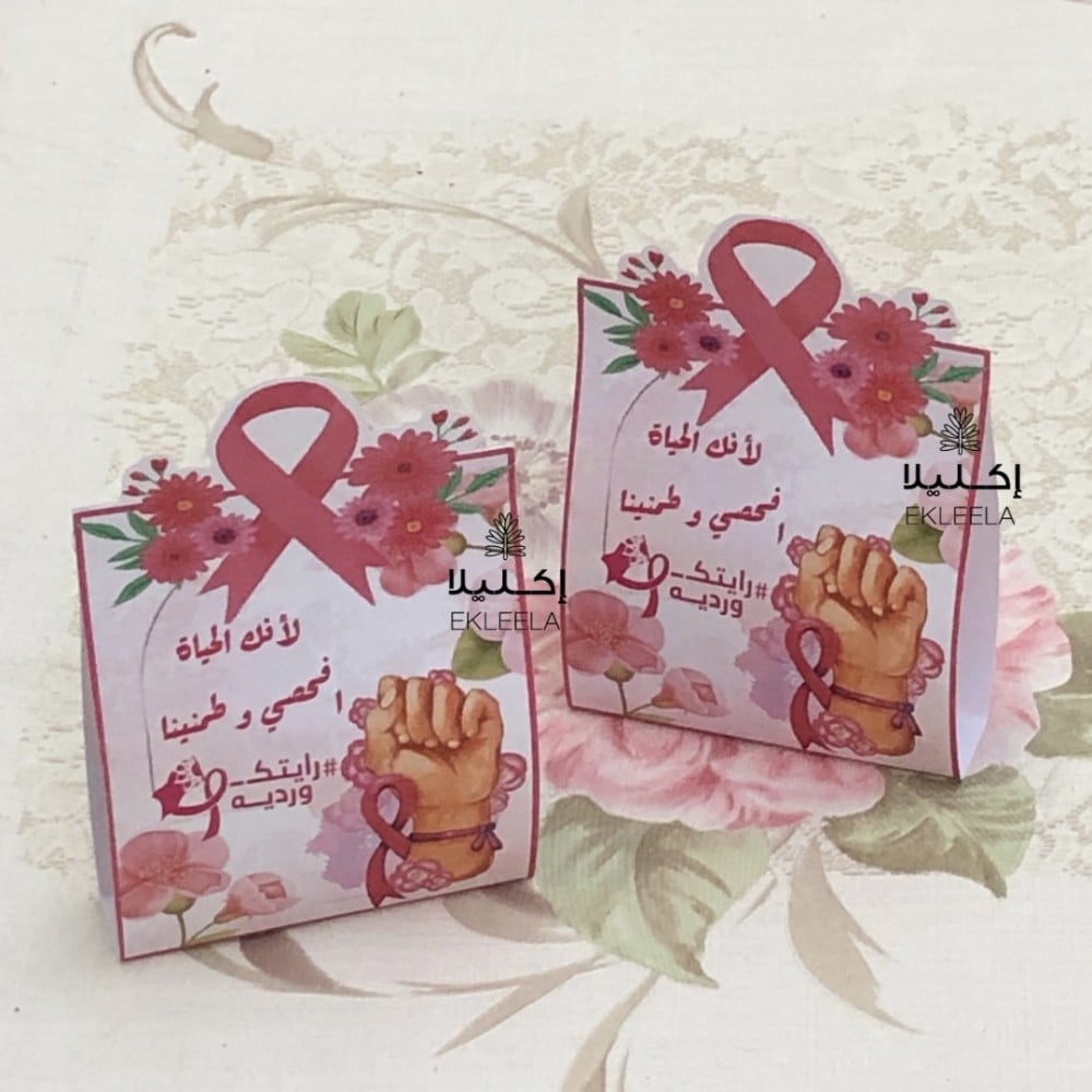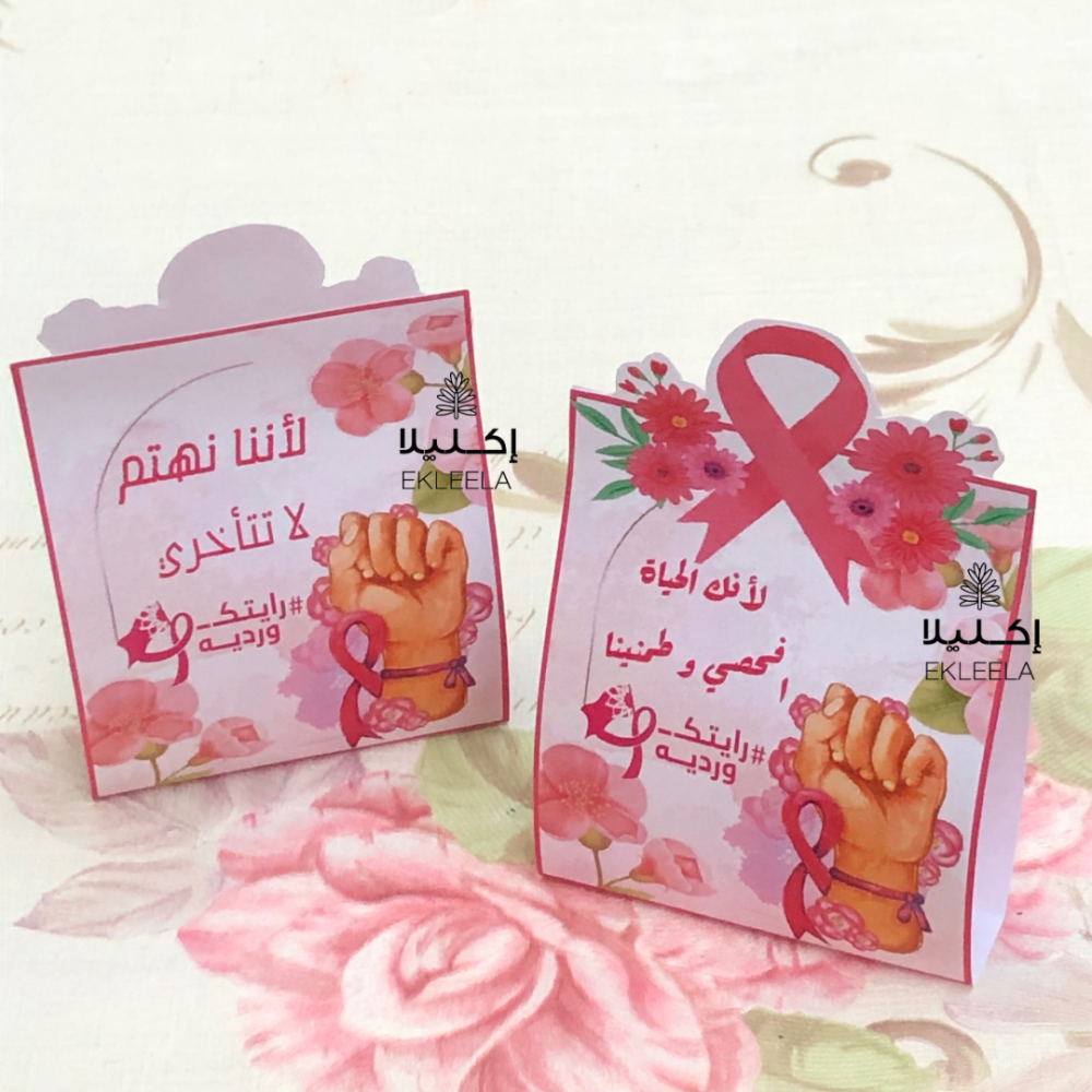 توزيعات ورقيه حجم صغير بثيم توعيه بسرطان الثدي مع تعبيه