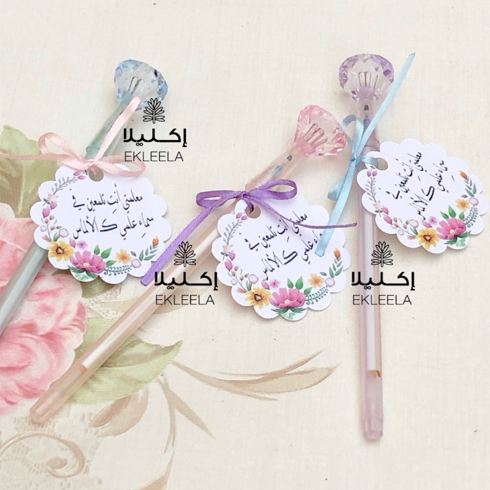 توزيعات اقلام حبر جاف بشكل الماس مع ثيم يوم المعلم 👩🏻🏫