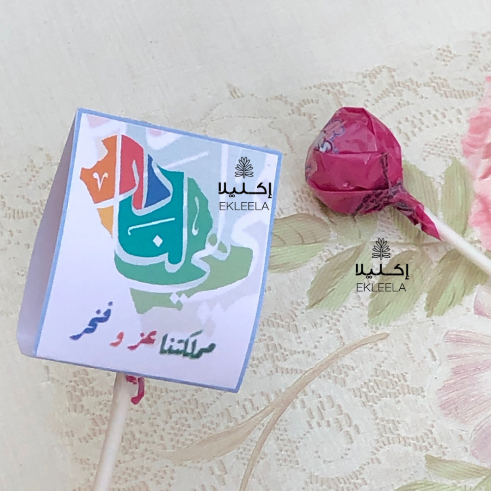 توزيعات ورقيه بثيم عن اليوم الوطني مع حلاو مصاص( 12 قطعه )
