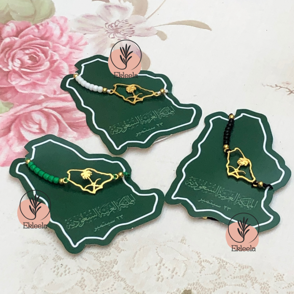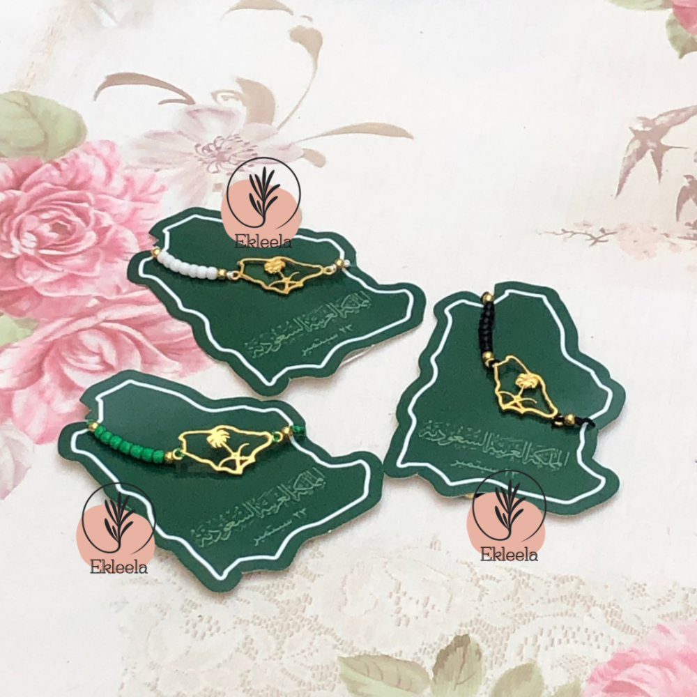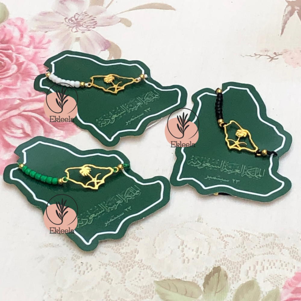 توزيعات اساور مع ثيم ورقي عن اليوم الوطني ( 12 قطعه )