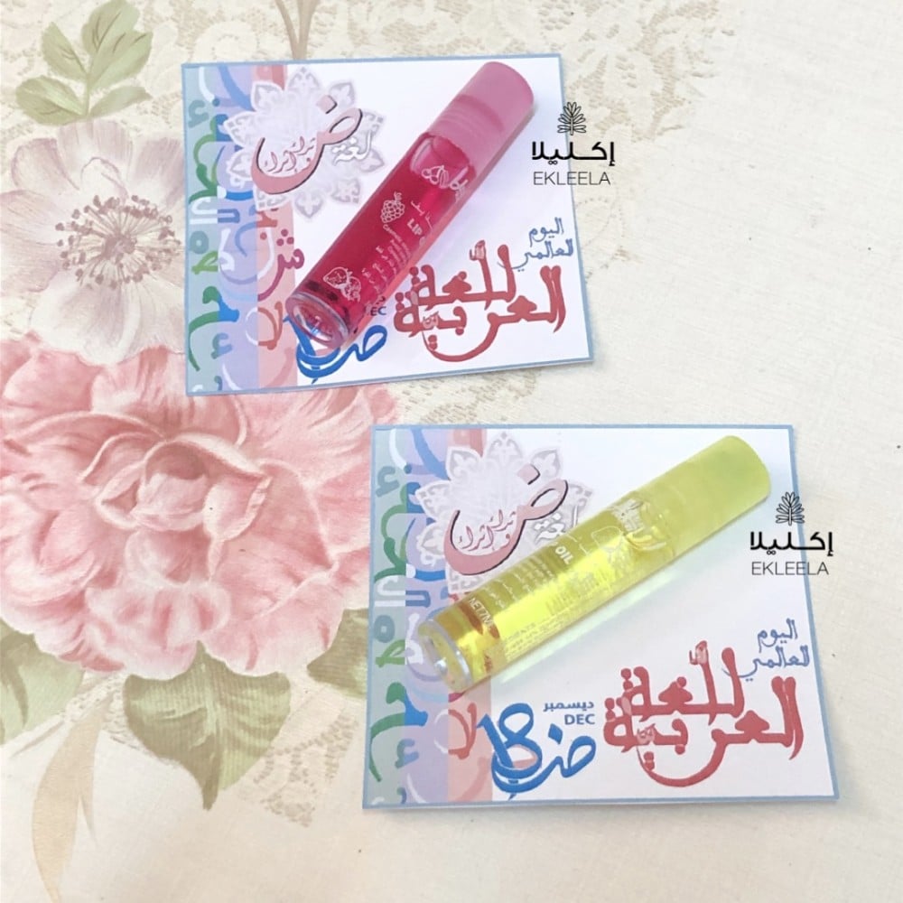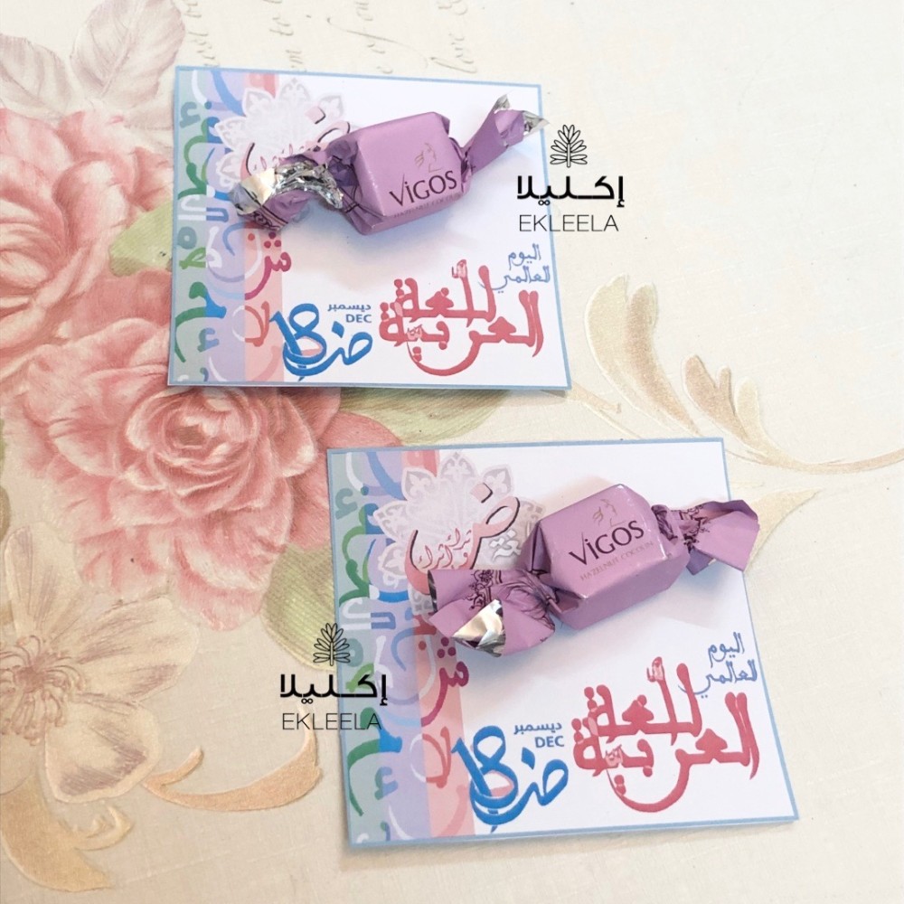 توزيعات ورقيه بثيم عن اليوم العالمي للغه العربيه مع تعبيه ( 12 قطعه )