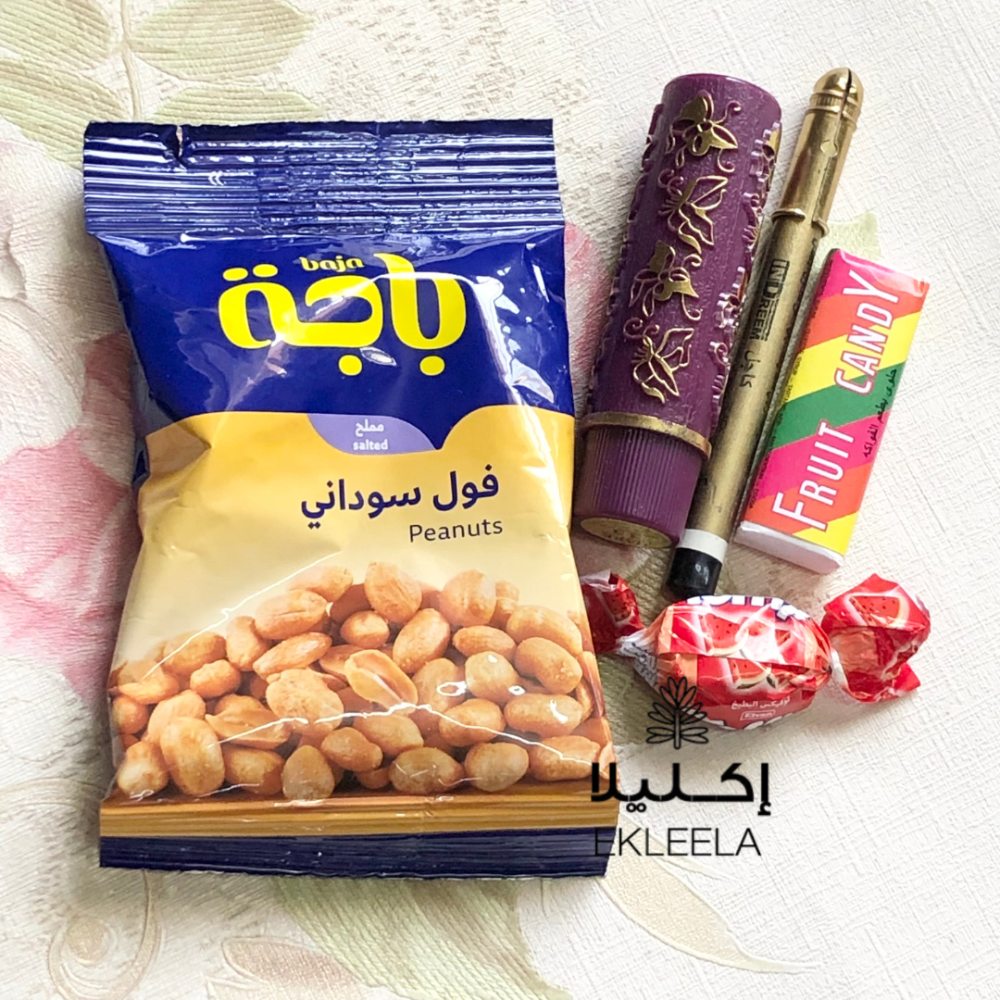 التعبيه موضحه بالصور ( روج سحري + كحل زمان + قطعة ويفر شكولاه + قطعة حلاو توفي )