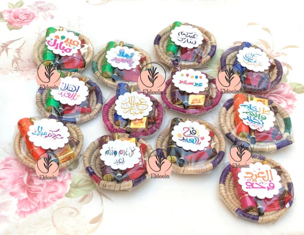 كل توزيعة خوص عليها استكر رمضاني او عيد منوع حسب اختياركم وليست شكل واحد كما هو موضح بالصور