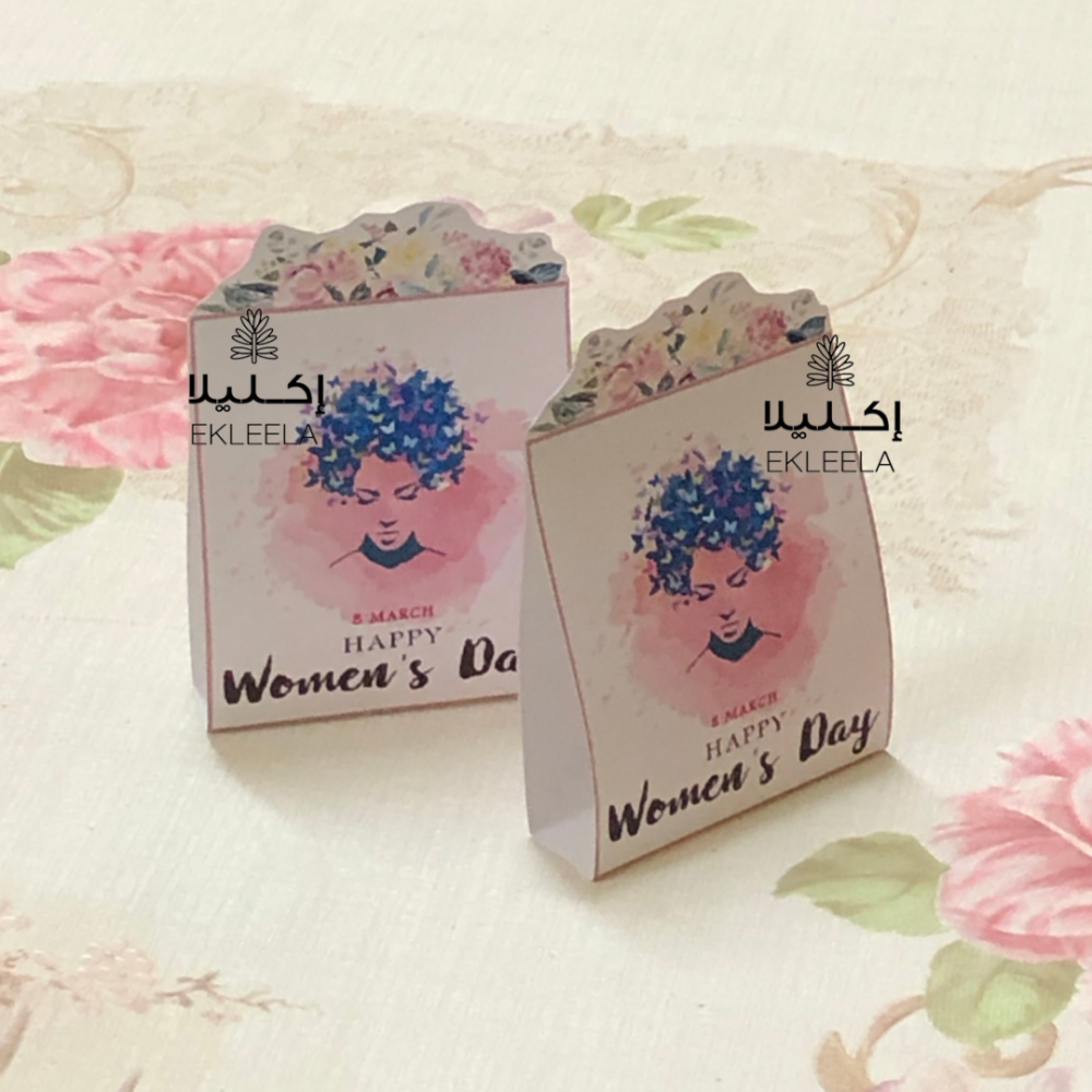 توزيعات ورقيه حجم صغير بثيم عن يوم المرأه العالمي مع تعبيه