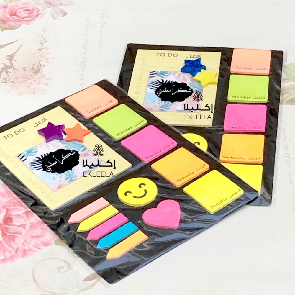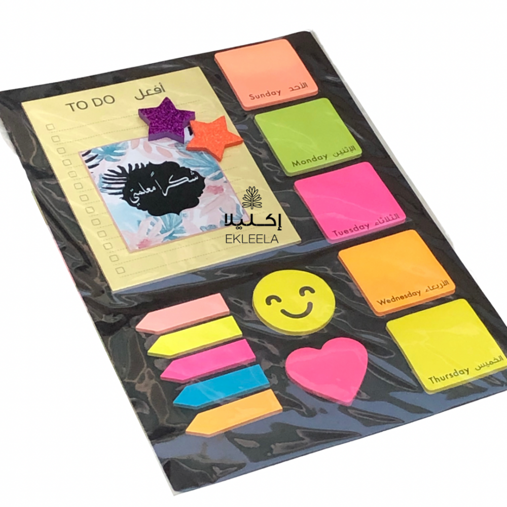 نوتة الملاحظات منوعه وملونه كما هو موضح بالصور شكل ولون النوته موضح بالصور