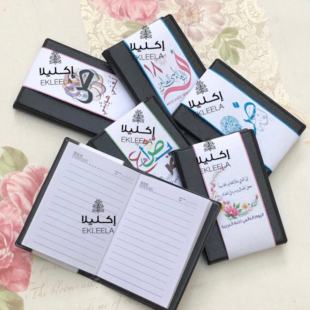 توزيعات دفتر ملاحظات للجيب او الشنطه حجم صغير بثيم ورقي لليوم العالمي للغه العربيه ( 12 قطعه )