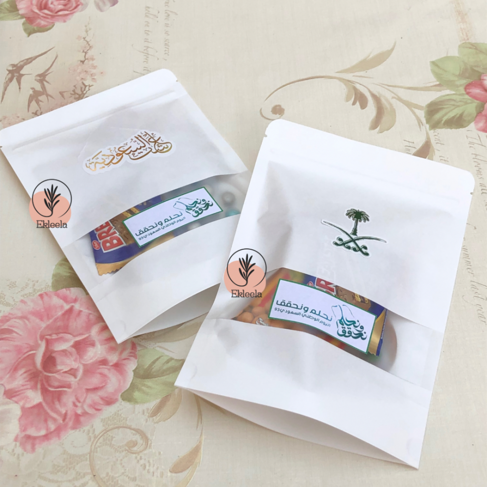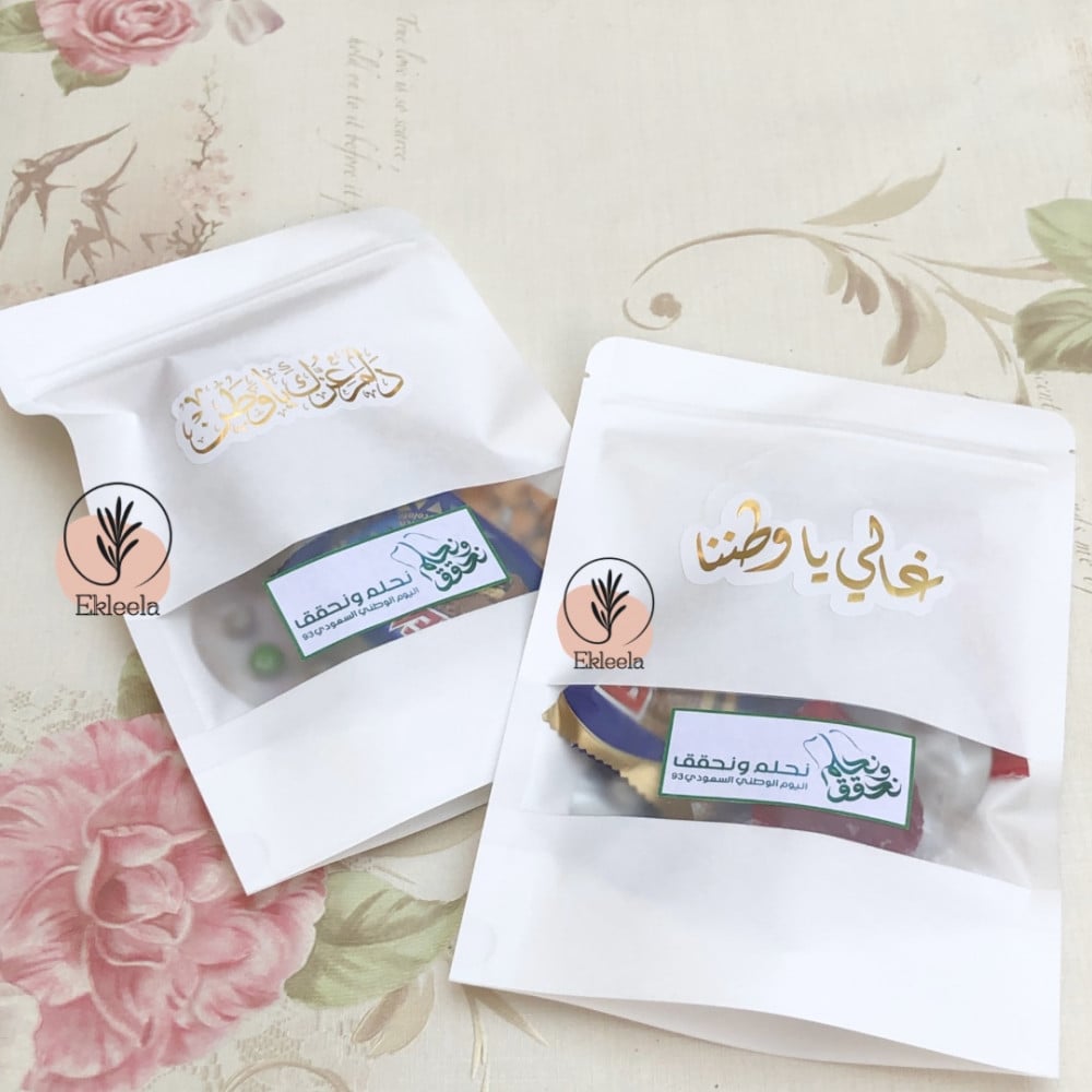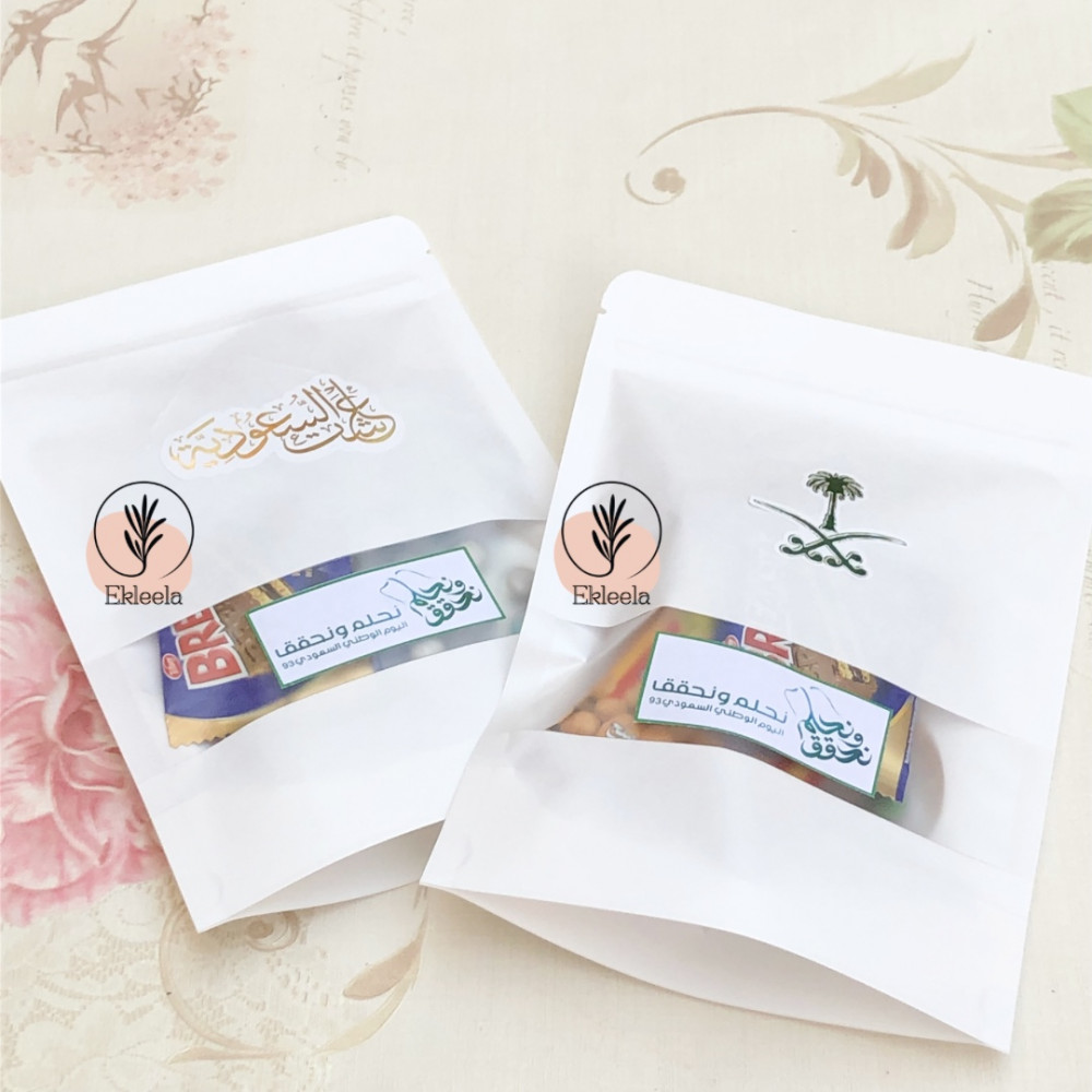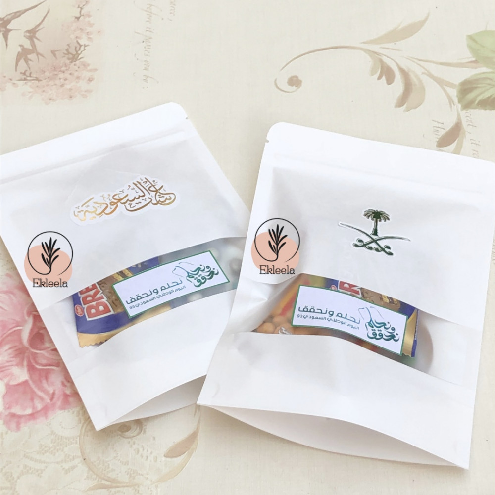 اكياس توزيعات مع ثيم لليوم الوطني نحلم ونحقق مع تعبيه ( 12 قطعه )