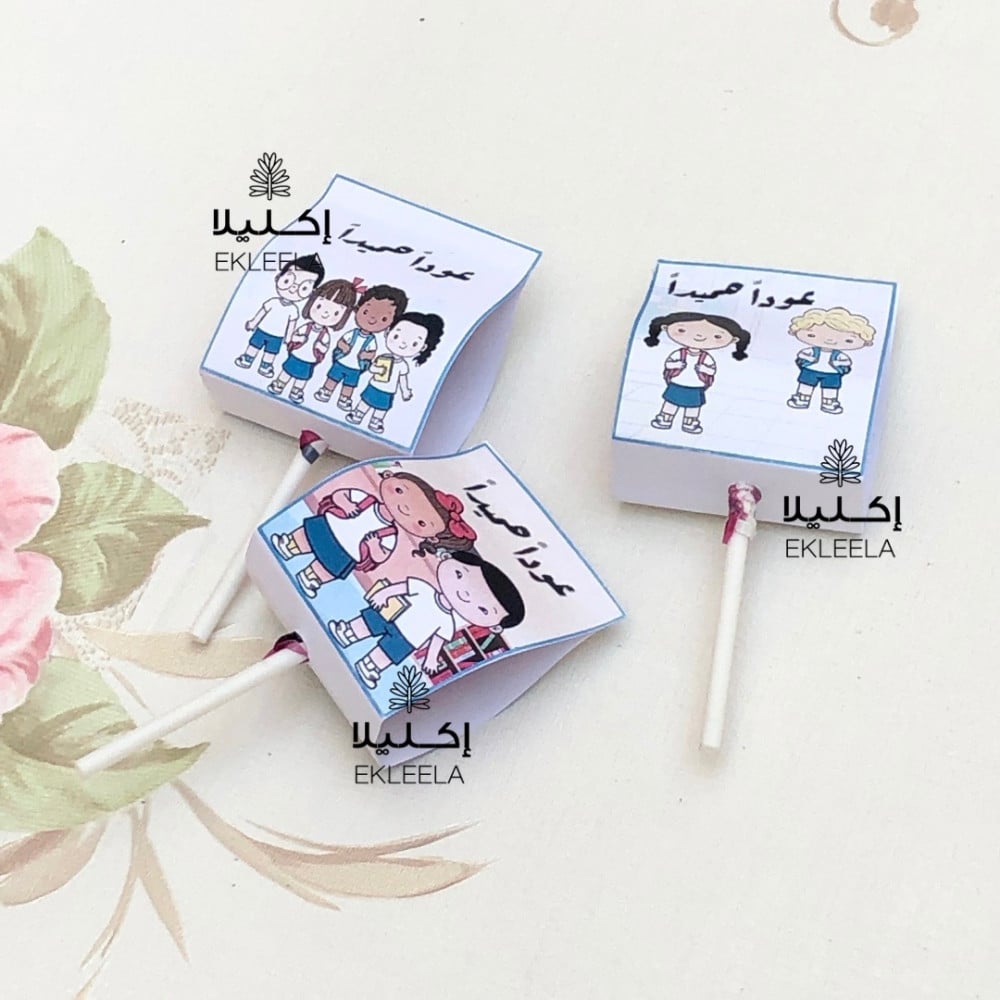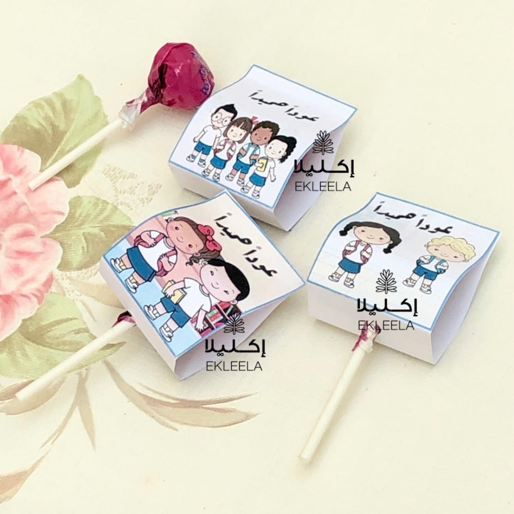 توزيعات ورقيه بثيم عن العوده للمدرسه مع حلاو مصاص( 12 قطعه )