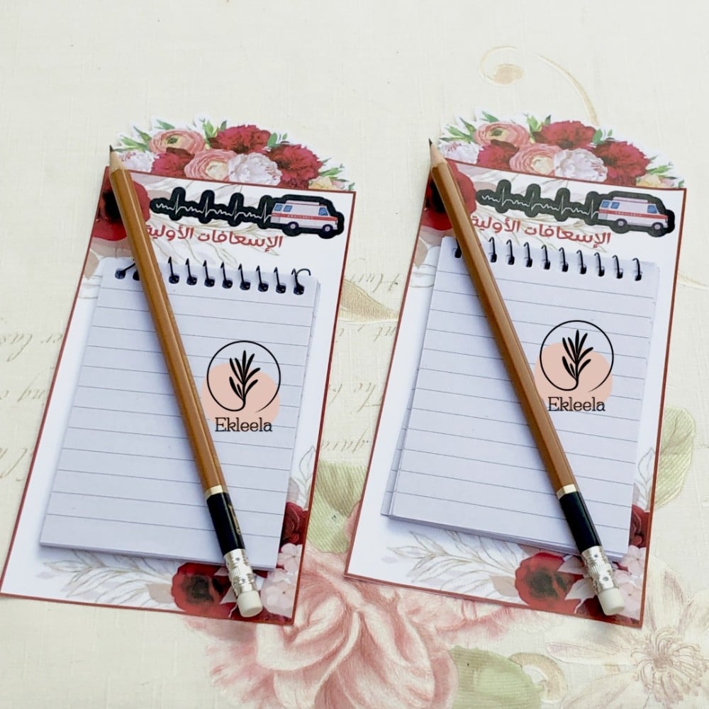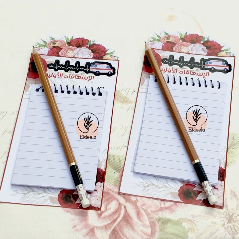 توزيعات نوته مع قلم رصاص بثيم ورقي عن الاسعافات الاولية