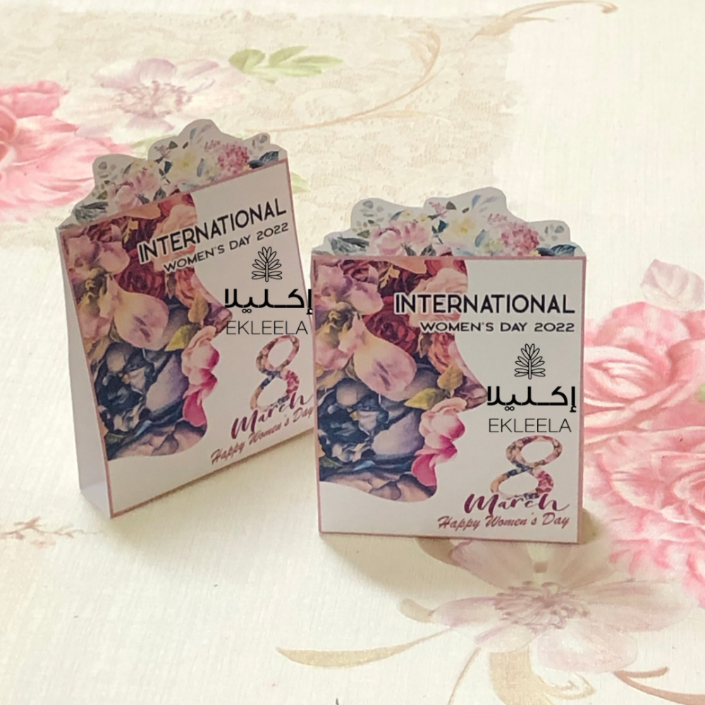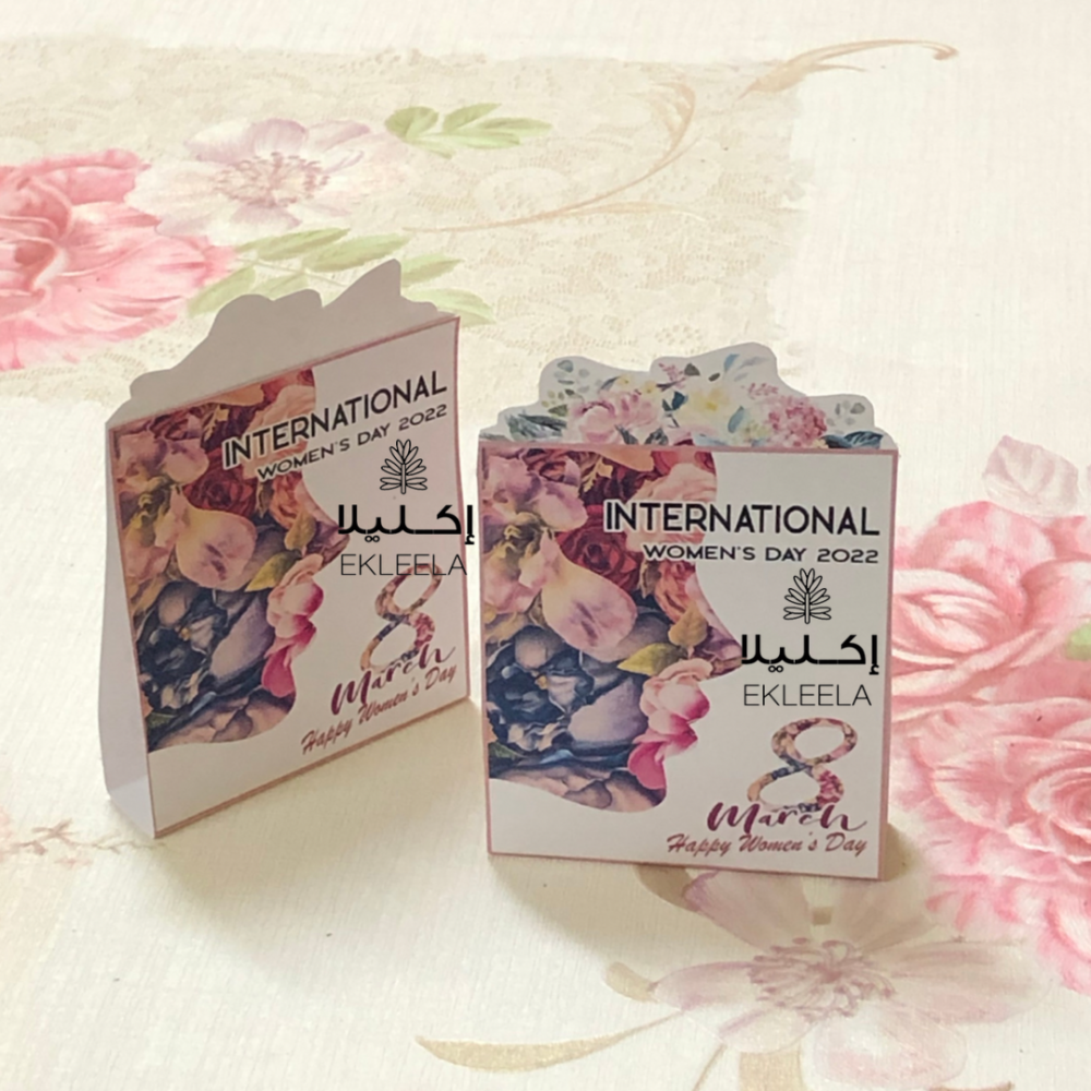 توزيعات ورقيه حجم صغير بثيم عن يوم المرأه العالمي مع تعبيه