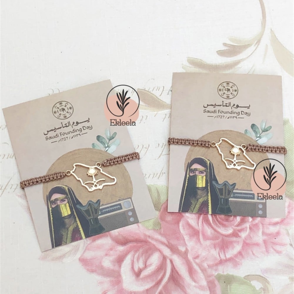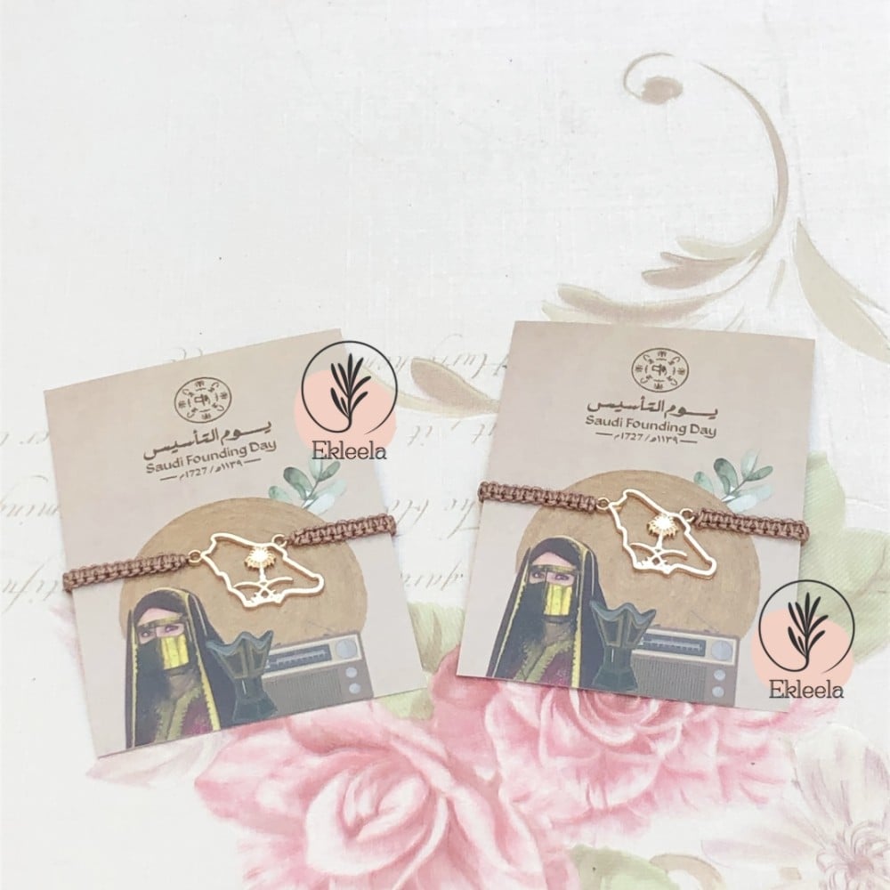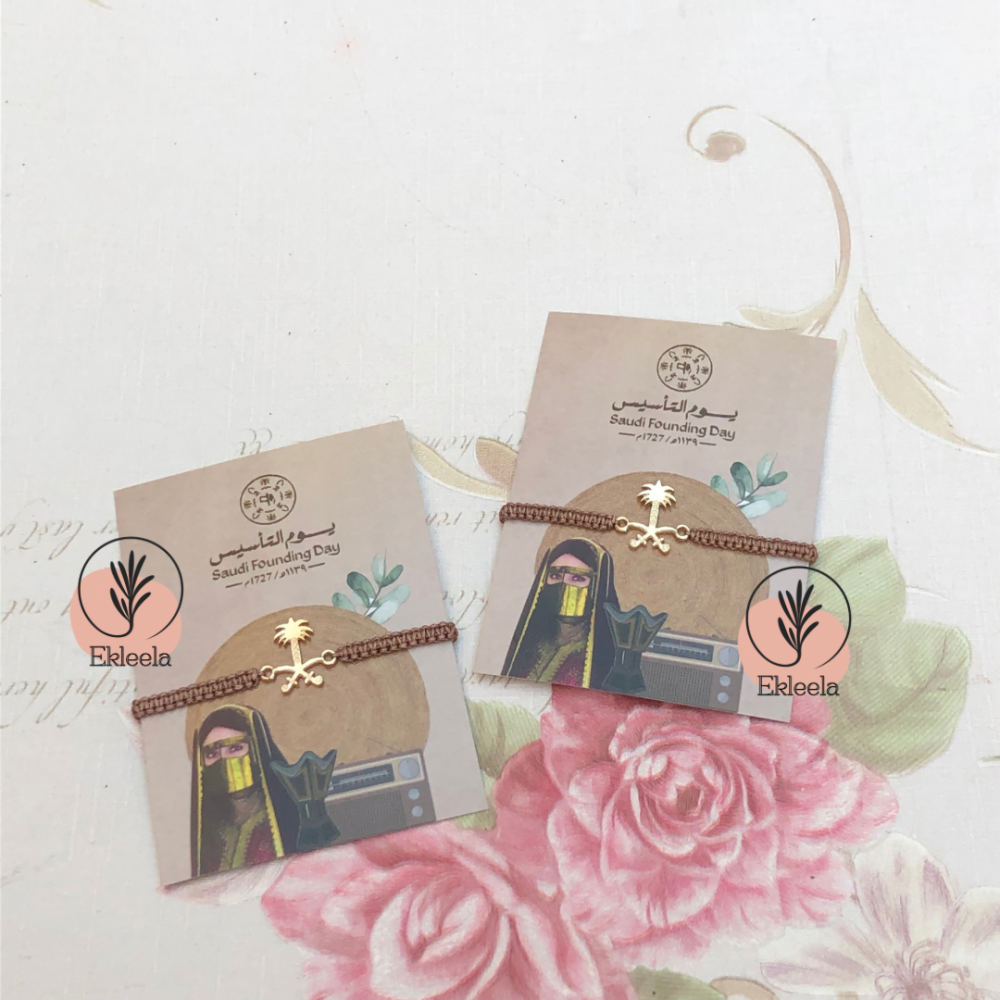 توزيعات اساور مع ثيم ورقي عن يوم التأسيس ( 12 قطعه )
