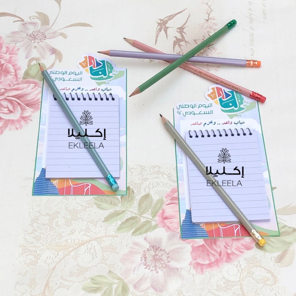 توزيعات نوته مع قلم رصاص بثيم ورقي لليوم الوطني