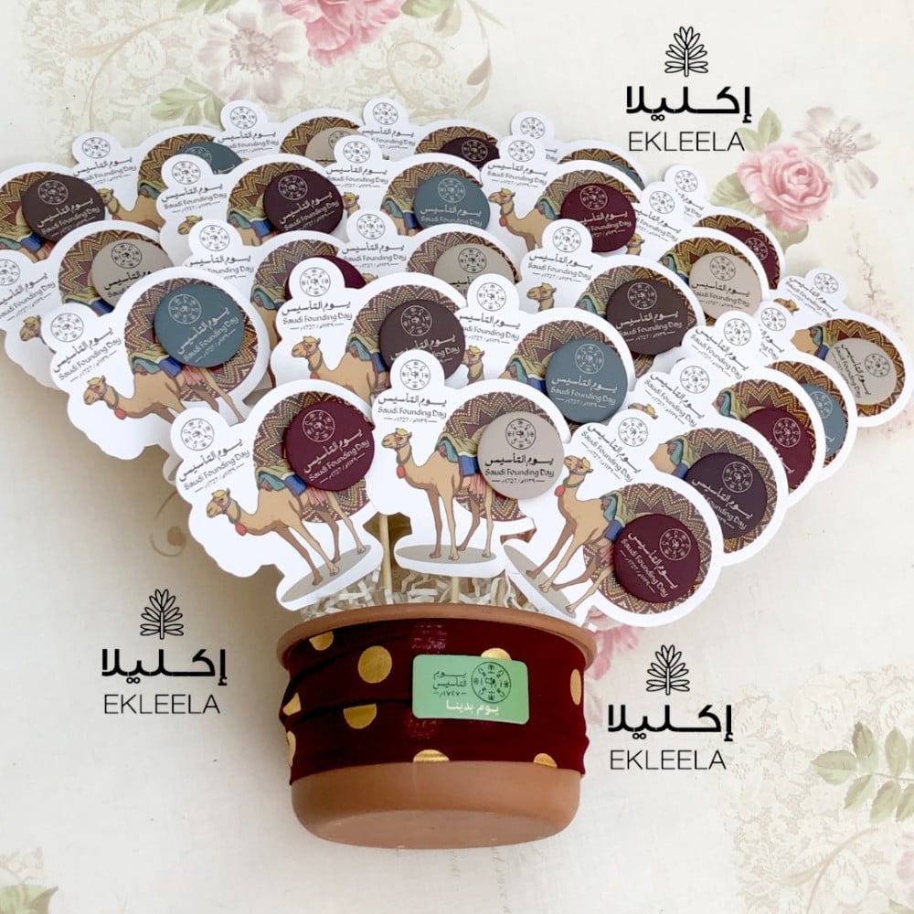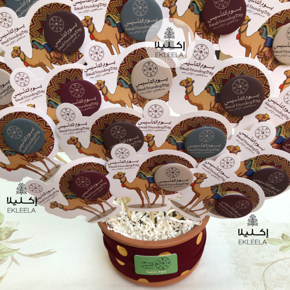 توزيعات باقة الجمل مع تعبيه بروش يوم التأسيس(باقة واحده )