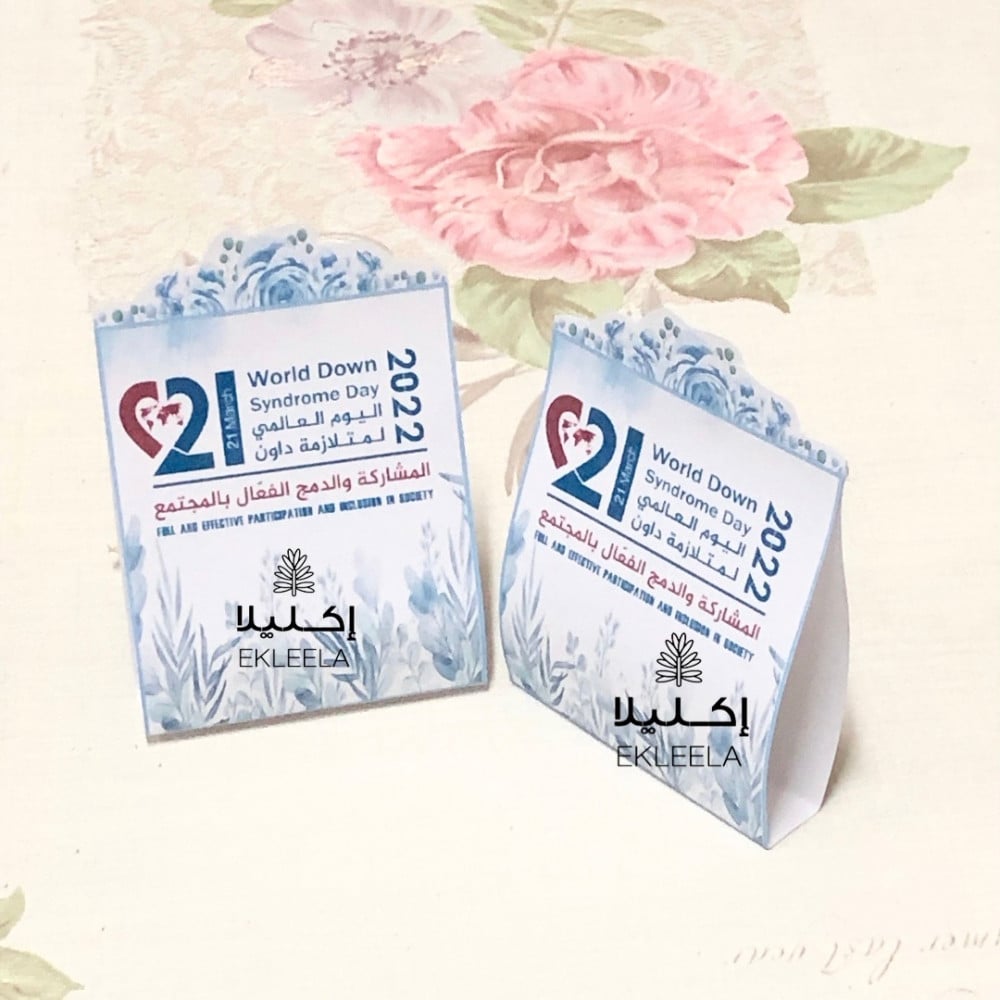 توزيعات ورقيه حجم صغير بثيم عن اليوم العالمي لمتلازمة داون مع تعبيه