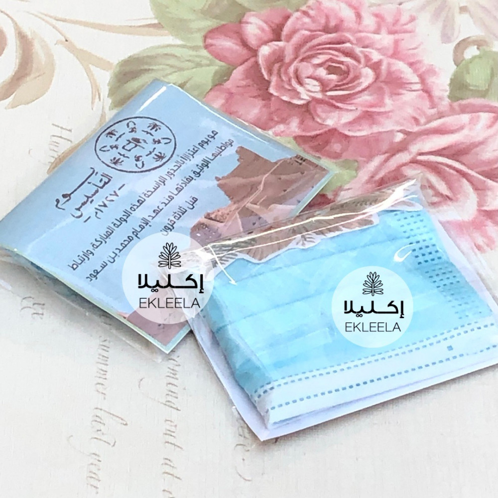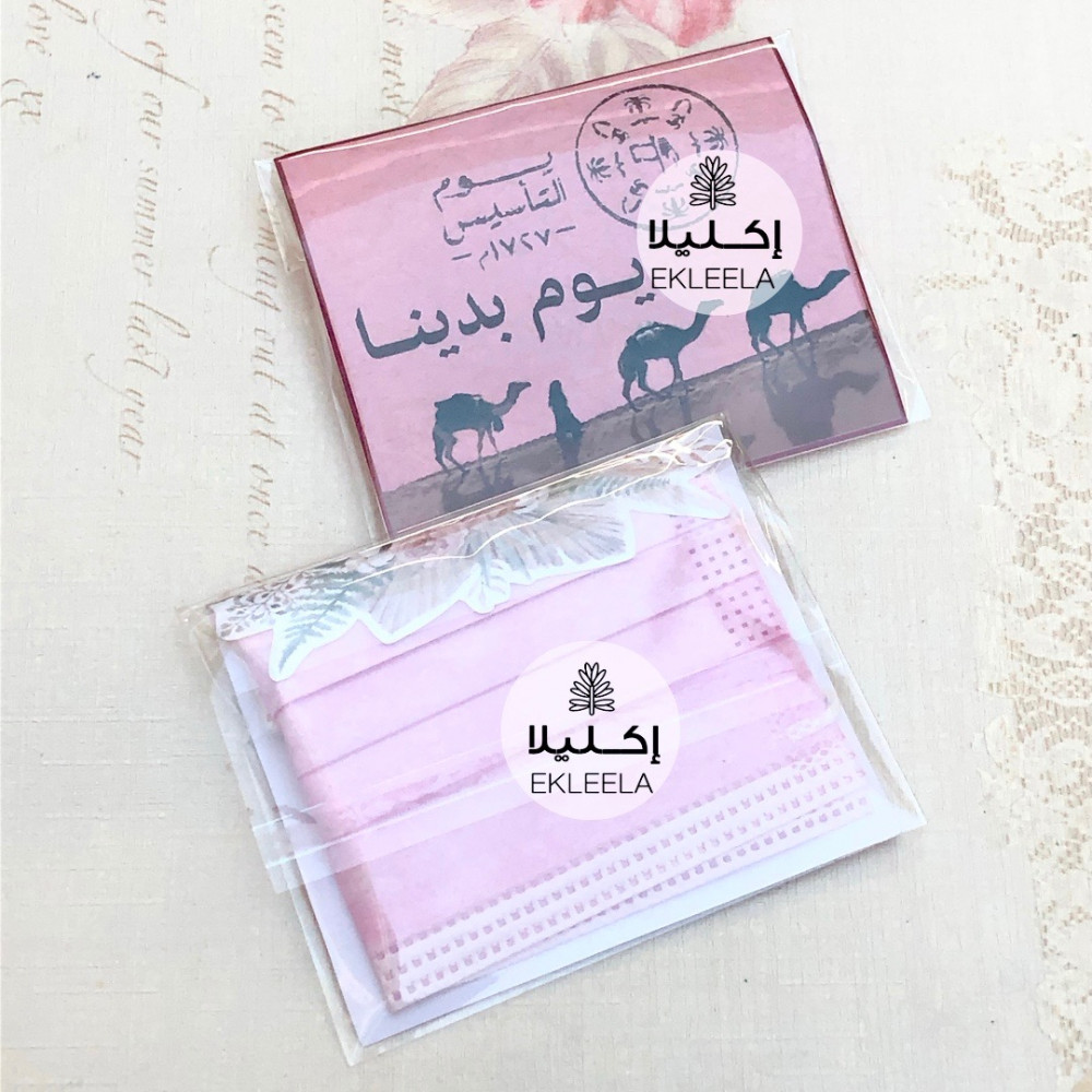 توزيعات كمامه مع ثيم ورقي عن يوم التأسيس( 12 قطعه )