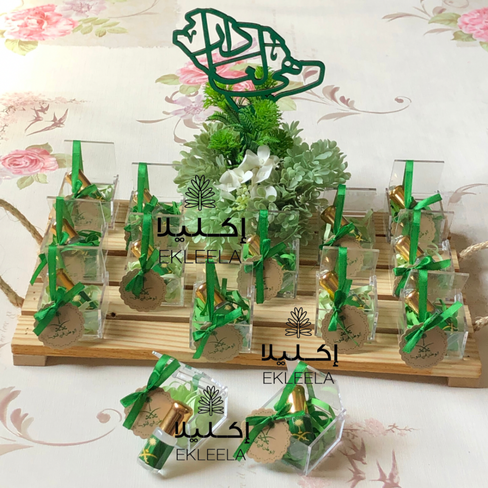 توزيعات ربع توله عطر حجم صغير لليوم الوطني / صينيه توزيعات ( قطعه واحده )